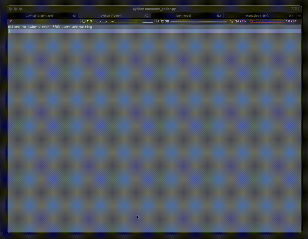 To start, I grabbed all the accounts followed by the accounts that I follow—my second degree following. When Elon took over, X bricked their API pricing (would cost $40k+ to get the data I needed). For this (non-commercial!) proj, I can deal with rate limits and latency—I just need endpoint access—so I used a reverse-engineered version of the client-side API.